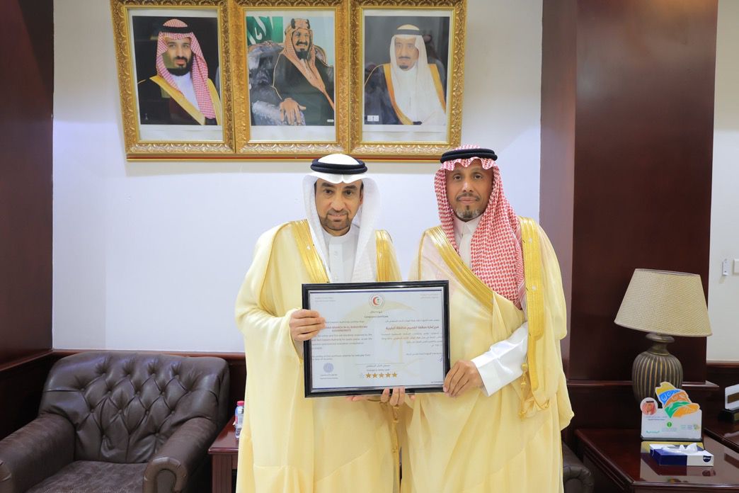 The certificate was presented by the Director General of the Saudi Red Crescent Authority in Al Qassim region, Mr. Khaled bin Saleh Al-Khudhr, to Mr. Mohammed Ali Al-Araifi, Governor of Al-Bukayriyah, in the presence of all team members overseeing the Mua’ath Project at the regional branch.